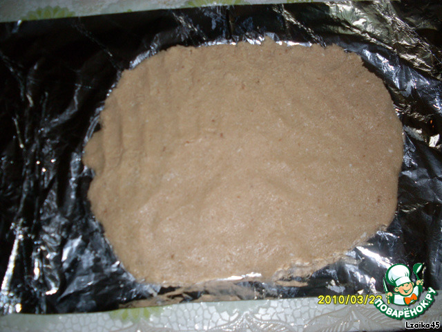 Выложить всю массу на фольгу ровным слоем. Это удобно делать влажными руками...