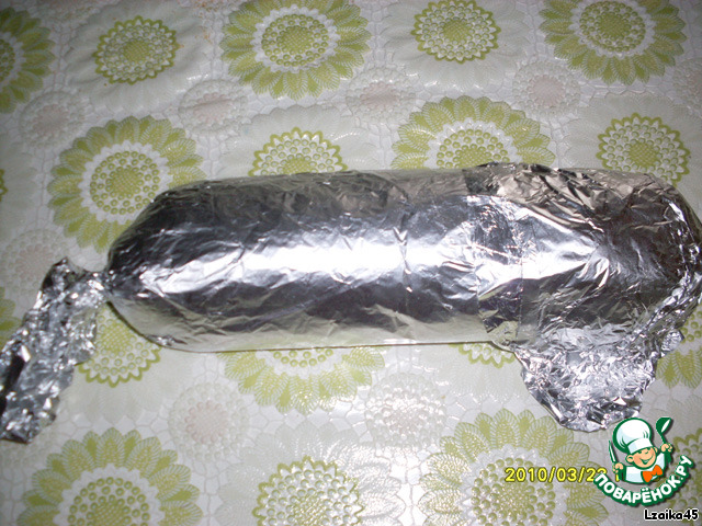 Завернуть всё это дело в фольгу и положить в холодильник... Желательно на ночь...для застывания.