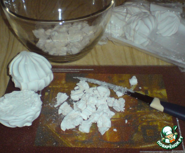 Перво-наперво делаем крем. Зефир режем на кубики.