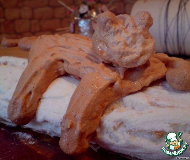 | Разлегся, понимаешь, на поваленной березке:) Десерт ужжжжжасно абалденный!!! Ну такой нежный… С такой нежностью мама гладит по голове своего малыша! Меренга, за ночь пропитавшаяся чудным зефирным кремом, сама становится больше похожей на крем, нежели на хрустящую основу рулета. На конкурс: «Gorenje: новогодняя композиция» |