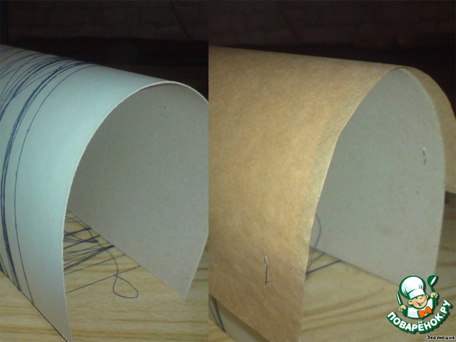 Тем временем я изготовила тигренка. Для него я заранее отложила немного взбитого белка. Соорудила из картона такую конструкцию. :-) Сверху покрыла листом бумаги для выпекания и закрепила ее степлером.