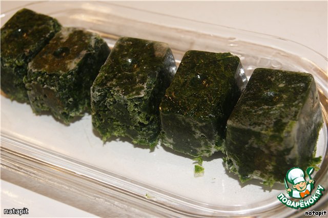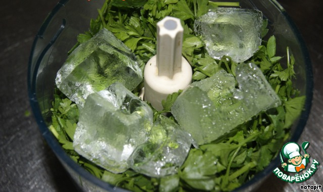 П.С. Не торопитесь выбрасывать оставшуюся зелень петрушки!!! Разложите её в формочки для льда и заморозьте, а получившиеся кубики потом сложите в пакет и храните в морозилке! В хозяйстве всё сгодится!