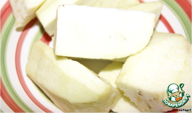 Баклажаны очистить от кожицы, нарезать на куски и по возможности освободить от семян.