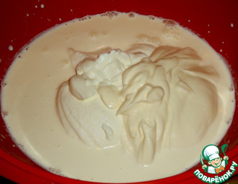 Для начинки взбивала сливки вместе с творогом (можно по отдельности, а потом соединить).