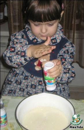 Теперь добавляем йогурт, хорошенько перемешиваем.