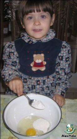 в миску жаропрочную кладем яйцо, ванильный сахар и муку,