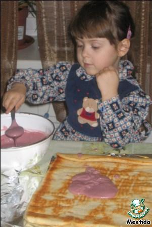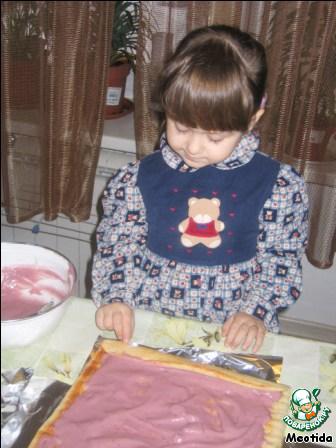 Крем слегка пальчиками можно как бы "вбить" в корж, чтобы сильнее пропитался рулет, моя помощница сказала, что это нужно делать обязательно:)
