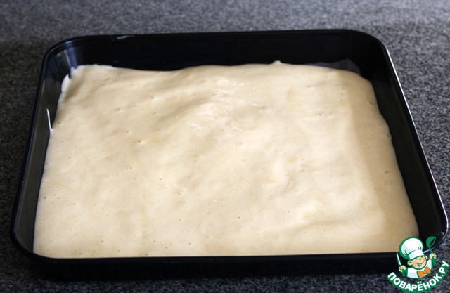 Аккуратно размазываем тесто по форме и выпекаем 10-15 мин. смотрите по вашей духовке. Очень важно не перепечь иначе не будет видно наших вишенек.