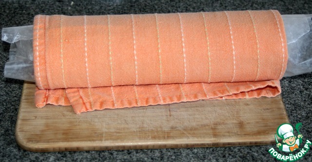 Свернуть рулет и отправить в холодильник на 2-3 часа.
