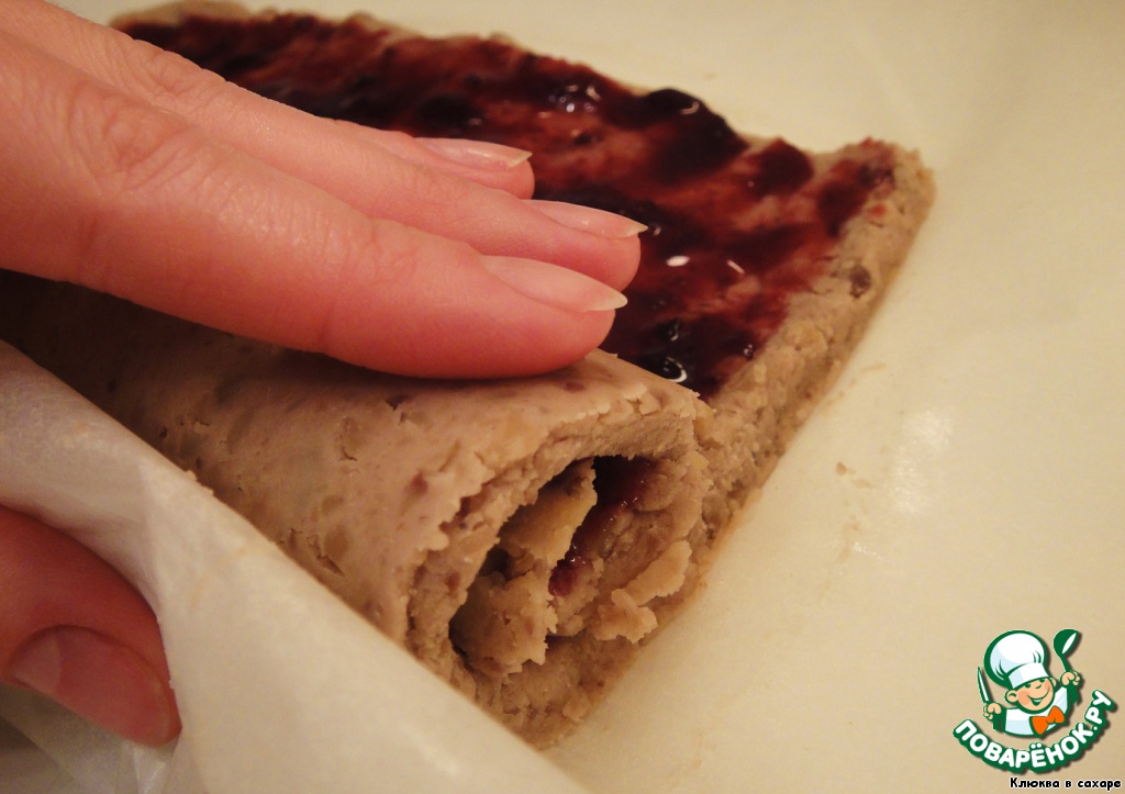 Аккуратно сворачиваем пласт в рулет.