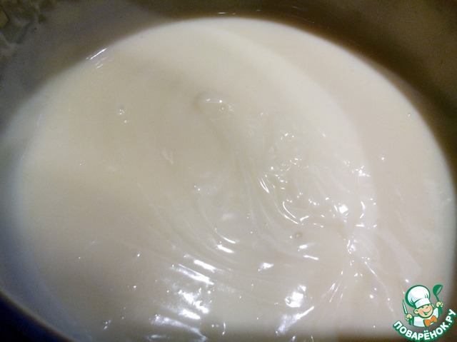 Для начала приготовим хорошо всем известный заварной крем. В кастрюльку влить молоко, добавить в него яйцо, муку, сахар, хорошо взбить венчиком и поставить на медленный огонь. Варить, постоянно помешивая, до загустения. В горячий крем добавить сливочное масло и перемешать.