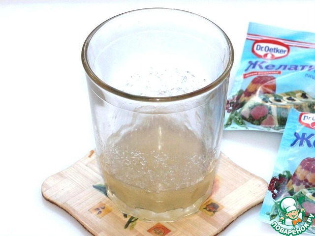 Быстрорастворимый желатин заливаем небольшим количеством холодной воды и даём постоять минут 5 минут.
