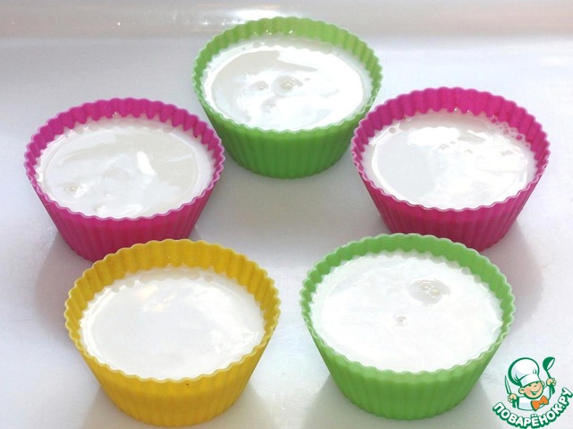Разливаем десерт в формы и ставим в холодильник. Через час-полтора десерт готов.