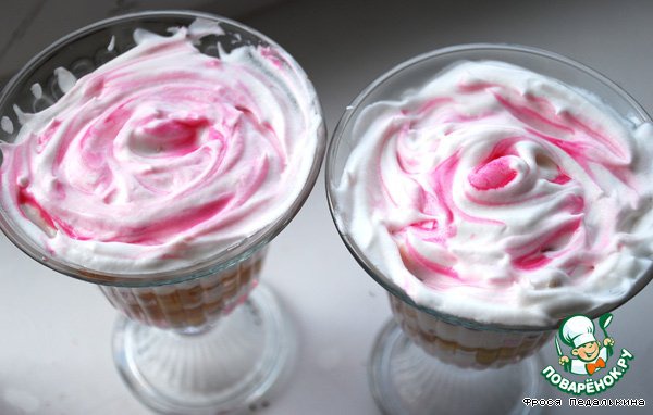 Жирные сливки (33% ) взбить с 1 ст.л. сахарной пудры.