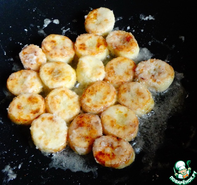 Обжарить бананы с двух сторон в растительном масле до румяной корочки.