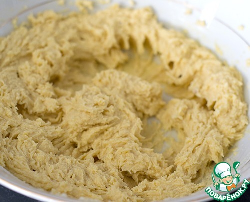 Смешать мягкое сливочное масло и сахар. Взбить до пышности. Затем добавить яйца и снова взбить.