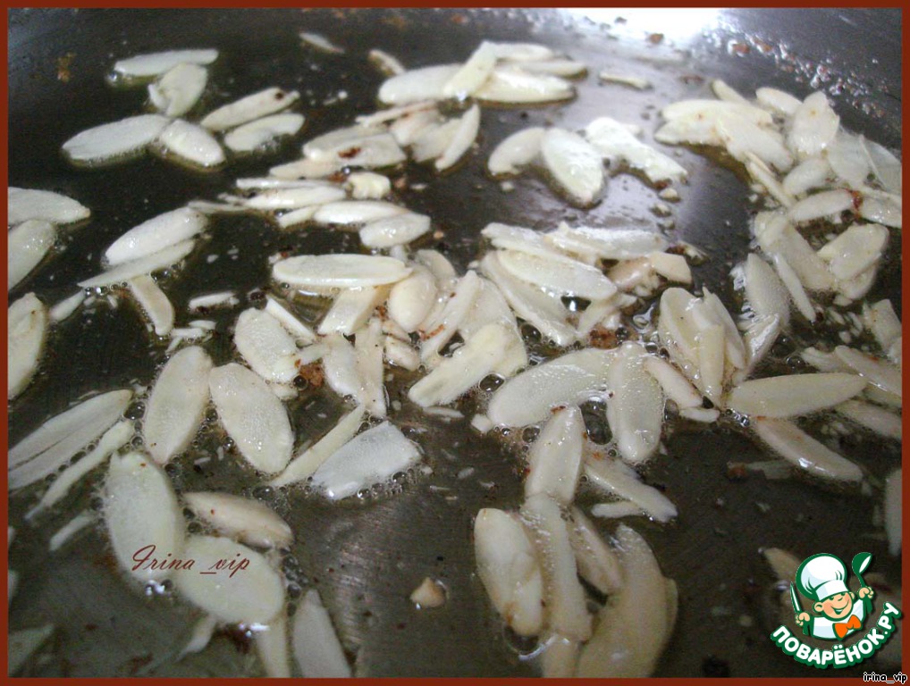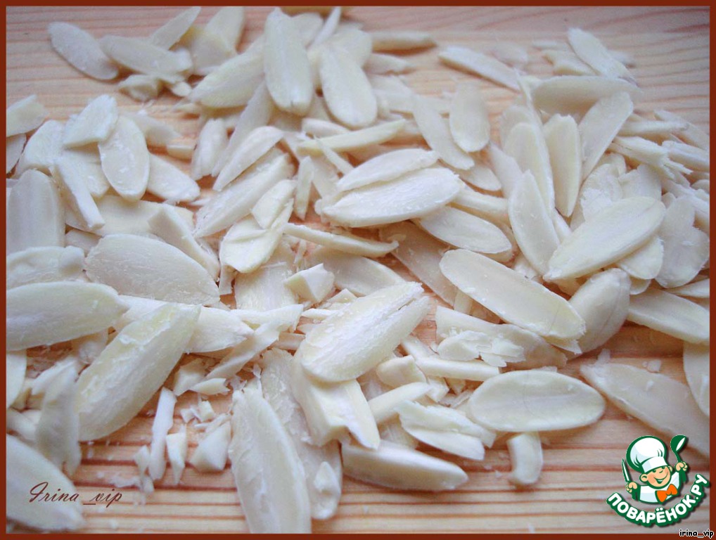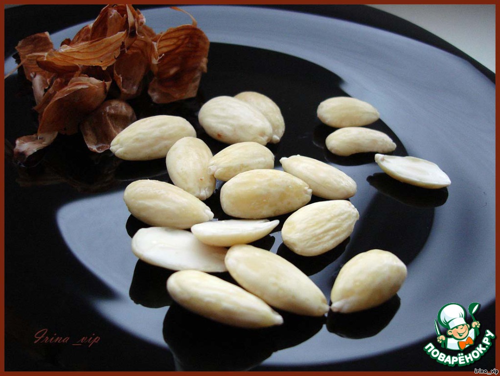 Автор исходного рецепта не оставила пожеланий относительно ореха, поэтому, руководствуясь лишь собственным вкусом, я остановила выбор на миндальном.
