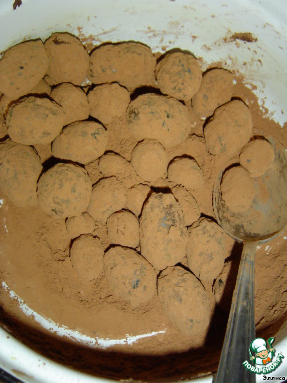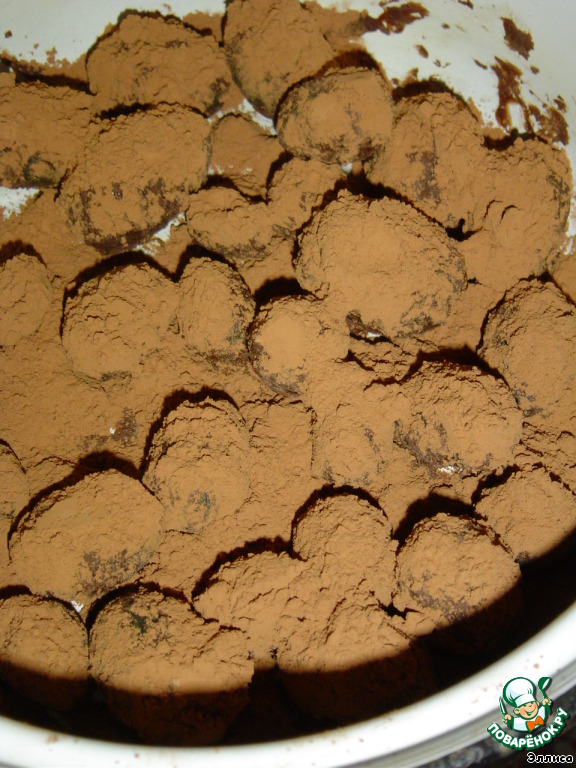 И снова добавляете какао. Дощечку выстелите пищевой бумагой и выложите на нее трюфельные шарики, а затем охладите их до полного застывания.