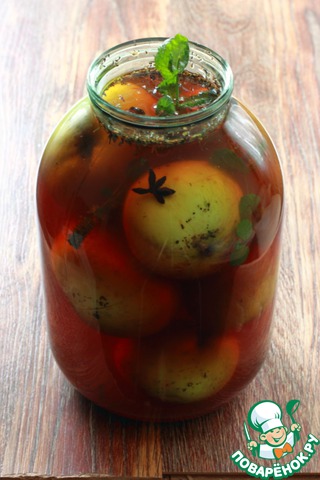 Добавьте пряности и травы. Автор, nira60 Ира предлагает взять душицу, зверобой и корицу. Я еще от себя добавила бадьян и одну гвоздичку. Сверху положите маленькую веточку мяты, она придаст особенный вкус яблочкам.