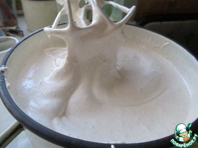 Потом добавила второй белок и взбивала, пока вся масса не увеличилась в объеме раза в 3 -4
