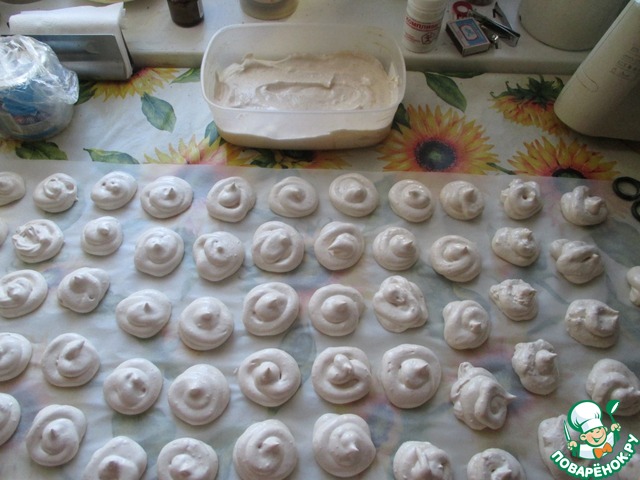 Еще раз похвалила себя за выбор кастрюли, и быстро по частям вываливала эту массу в кондитерский мешок, и отсаживала зефиринки на заранее застеленный пекарской бумагой стол, попутно уже нещадно ругая себя, что насадки к мешку благополучно забыла на даче!