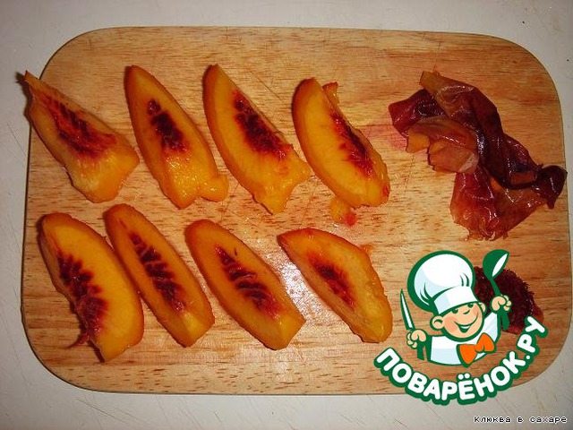 | Надо было срочно спасать перезревшие персики, мякоть которых стала "ватной" и не было никакого удовольствия от их поедания свежими. Трудно поверить, но из фруктов, на которые я уже махнула рукой, получился просто "королевский" десерт! Ароматный, наивкуснейший... |