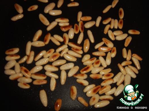 На чистой, сухой сковороде обжариваем кедровые орешки.