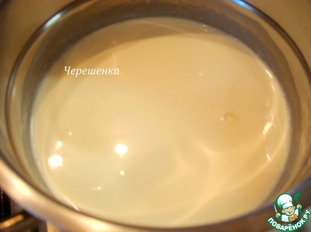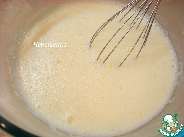 Тонкой струйкой ввести горячие сливки в желтковую смесь, постоянно взбивая ее. В конце добавить сливочное масло, перемешать.