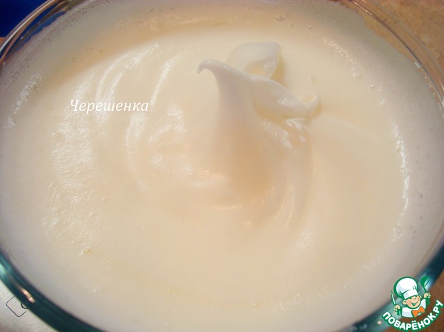 Взбить охлажденные белки с 50г сахара до крепких, устойчивых пиков.