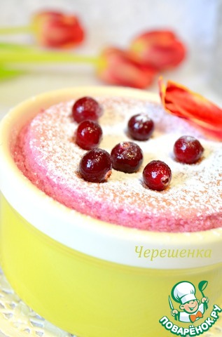 | Сегодня хочу предложить вам по-весеннему яркий, ароматный и очень нежный десерт. Девочки, это для нас! Как приятно собраться девчонками, выпить бокал шампанского и полакомится очень легким и приятным во всех отношениях десертом! Клюква у меня замороженная, еще остались зимние запасы. Если у вас нет клюквы, то вы можете смело сделать такое суфле из любой ягоды, запасы которой у вас наверняка до сих пор сохранились. |