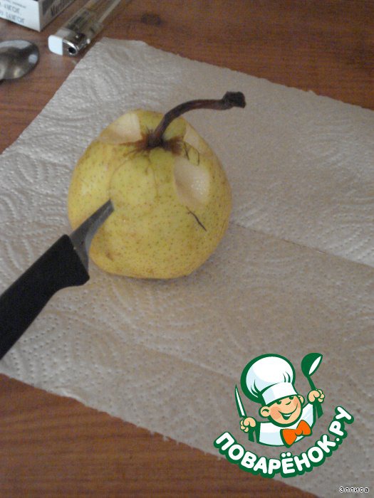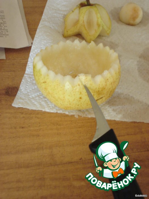 Ложкой - нуазеткой вынимаем мякоть груши в виде шариков.