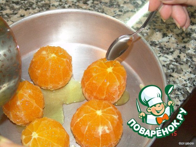 В идеале сахар на поверхности апельсина должен закарамелизоваться.