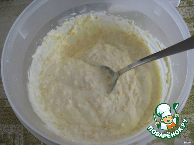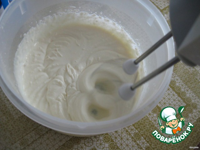 Взбиваем полученную массу со взбитыми сливками до кремообразного состояния.