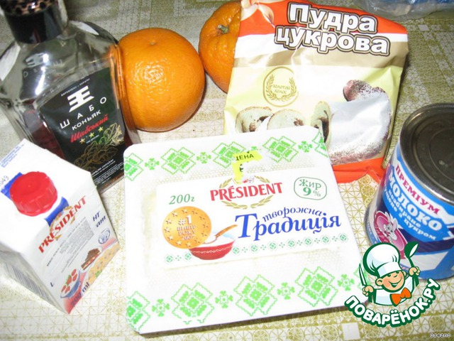 Один апельсин очищаем от белых волокон, делим на дольки, взбрызгиваем коньяком и посыпаем сахарной пудрой.