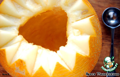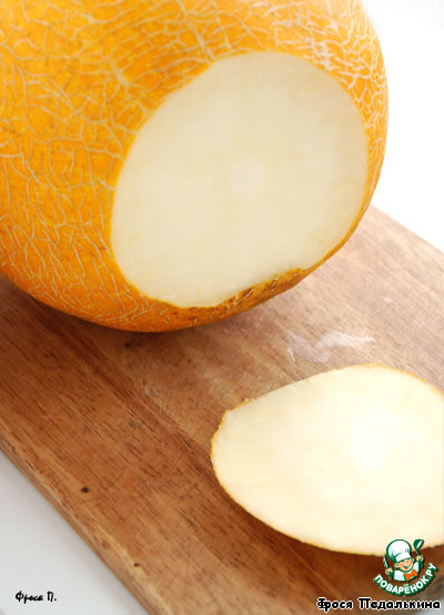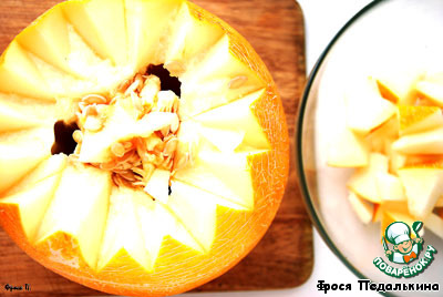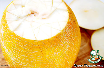 Начнем с дыни. Нижнюю часть для устойчивости аккуратно срезать.