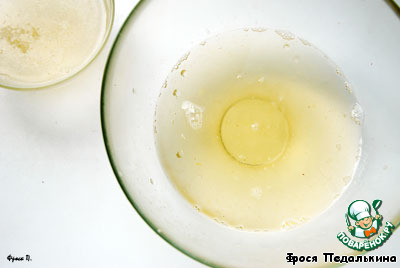 Сколько в граммах составляет осьмушка желатина для меня остается загадкой, поэтому делала «на глазок». 1 с.л. желатина замочить в 200 мл холодной кипяченой воды, оставить набухать. Затем распустить на водяной бане или в СВЧ, не доводя до кипения.