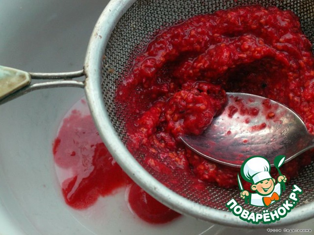 Малину перебрать, помыть, с помощью блендера сделать пюре.