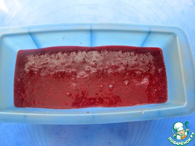 Я использовала замороженную вишню без косточки. Предварительно ее нужно разморозить, слить выделившийся сок в чашку, пюрировать в блендере. Для усиления вкуса можно добавить по желанию 10-15 предварительно заспиртованных вишенек.