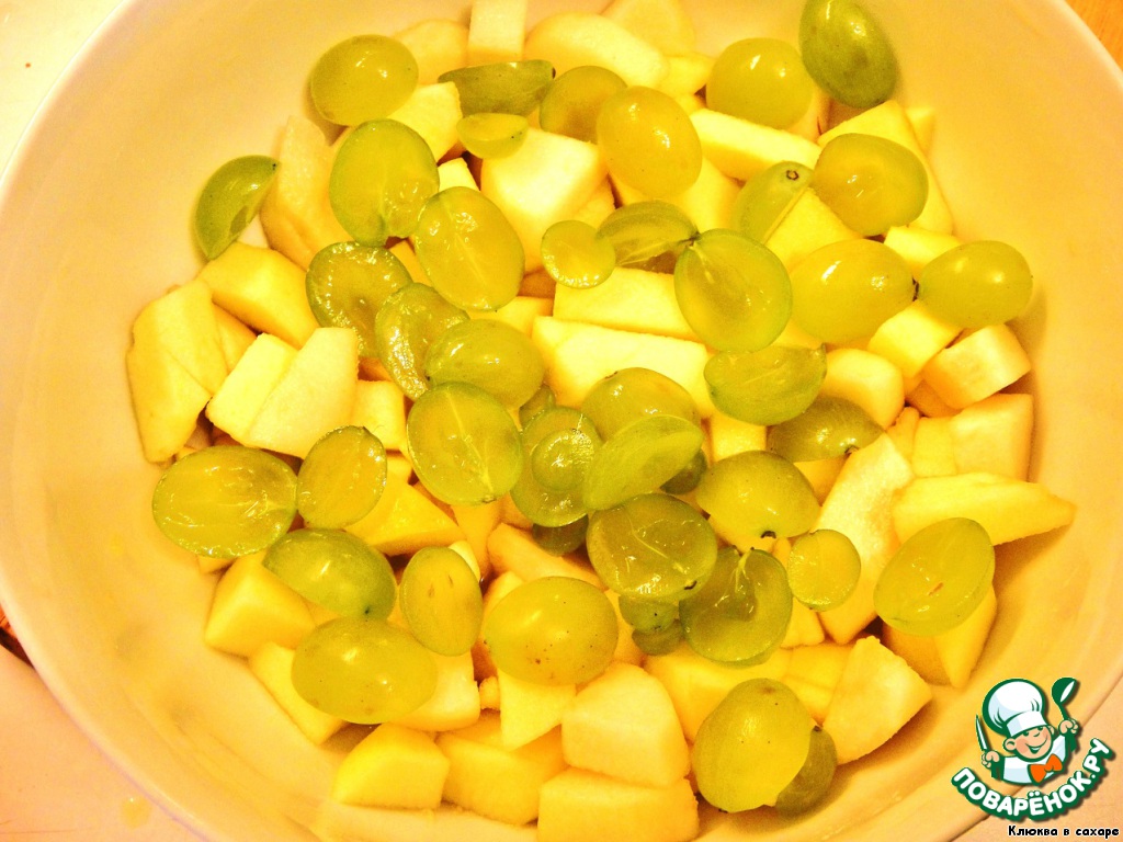 Яблоко и грушу очищаем от кожицы и сердцевины. Режем небольшими кубиками.