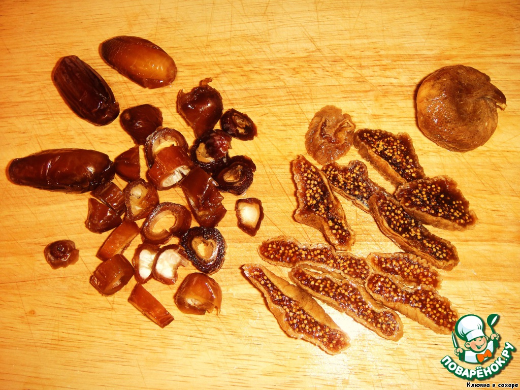 Инжир режем на дольки, предварительно удалив жесткие «хвостики».