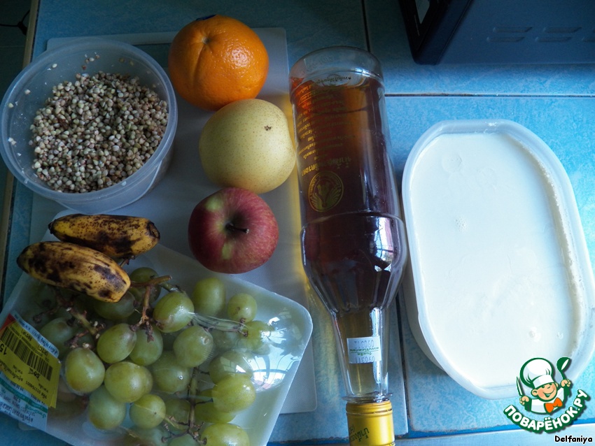 Итак, на фото исходные продукты + я использовала мюсли и овсянку. Если у вас нет возможности купить необработанную гречку, используйте любые доступные замоченные и пророщенные зерна, пшеницу, например. Или дополнительно возьмите еще мюсли или овсянки. Так как обычная пропаренная гречка, думаю, не подойдет по вкусу для фруктовых салатов.