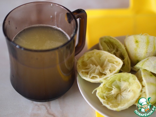 Выжать сок с лаймов и лимона. Вот и тут я помучилась!!! Очень упрямые оказались эти цитрусовые, и никак не хотели отдавать мне свой сок. Надо было в горячую воду их опустить на время, но не вспомнила я сразу эту хитрость. Наконец-то сока набралось нужные полстакана