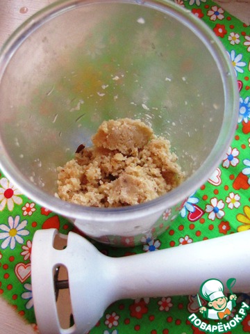 Если миндаль неочищенный - заливаем кипятком, выдерживаем 10 минут и очищаем от кожуры. Даем подсохнуть и измельчаем до состояния мелкой крошки.