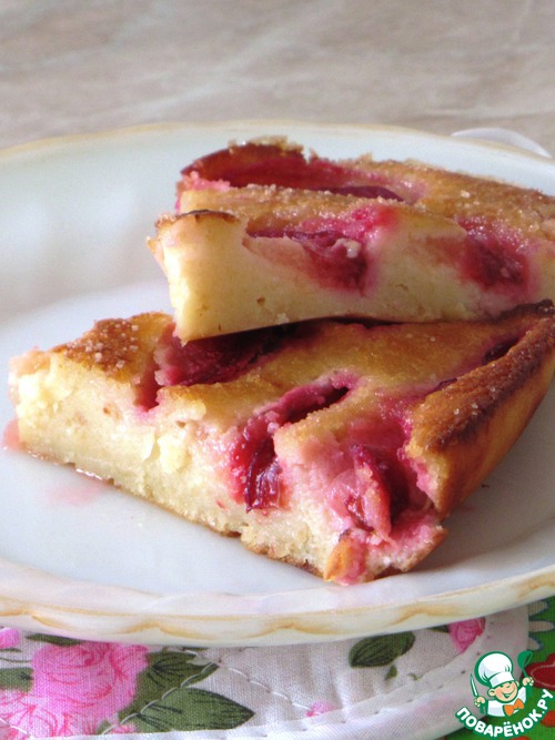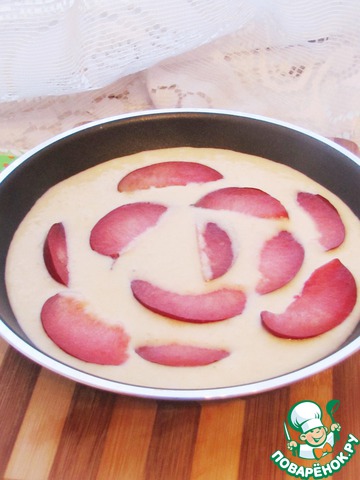 Выливаем крем в форму, выкладываем сверху кусочки слив и запекаем в разогретой духовке примерно 20-30 минут. Пока масса не уплотнится.