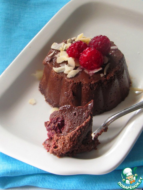 Украшаем на свой вкус и подаем. В моем случае - миндальные лепестки и малина.