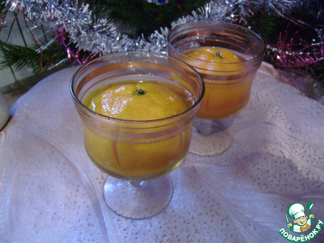 Выкладываем мандарины в бокалы и наливаем сироп. Кушать можно с кожурой, а можно чистить. Но подавать желательно их целенькими.