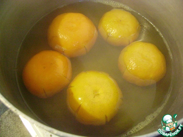 Количество мандарин берем на свое усмотрение. На каждой мандарине делаем 5-6 продольных надрезов.