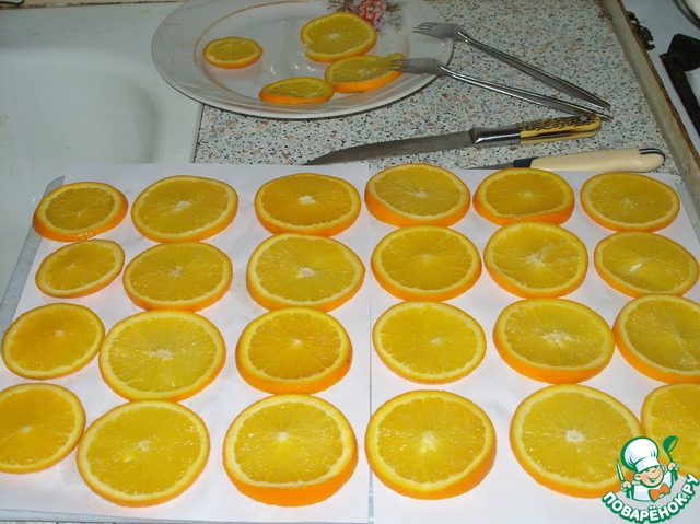 Если вы хотите, чтобы апельсины были более сухие, то отправляем их в духовку при температуре 100-120* на 15-20минут. Смотрите, чтоб не пригорели!