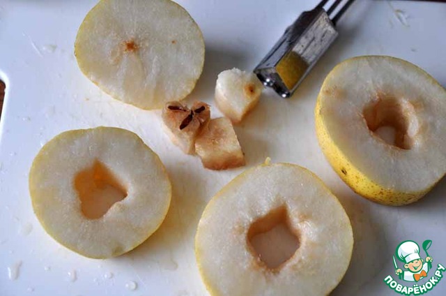 Берём спелую твёрдую грушу, моем, разрезаем на кружки размером около 1,5 см.