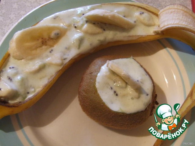 | Что-то меня понесло на приготовление десертов в их кожуре. Если до этого был только банан, то теперь добавилось и киви. И все это для конкурса "Сладкий вкус лета". |